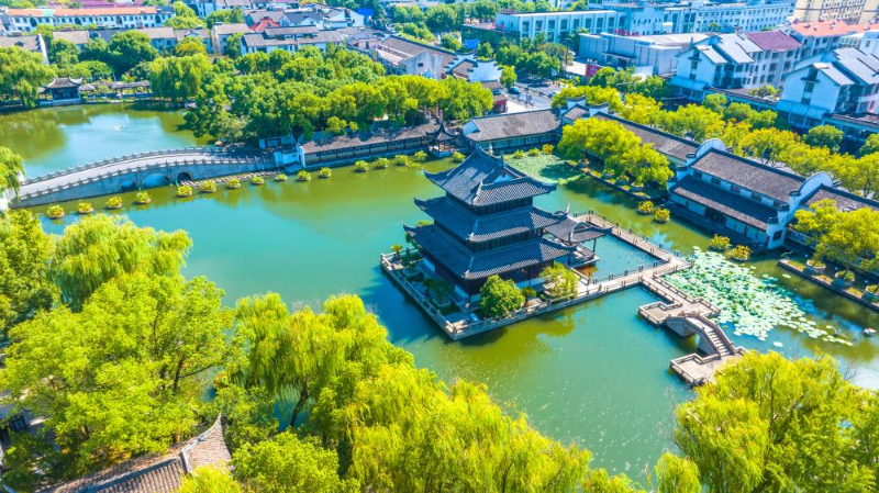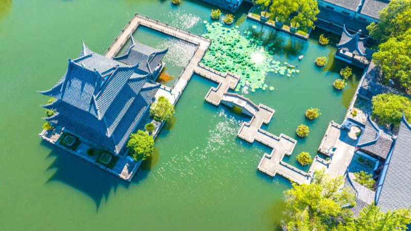 以上图片:2025年8月27日在位于浙江省湖州市南浔区南浔镇的南浔文园内拍摄的风景。(无人机照片)CICPHOTO/屠旭东 摄