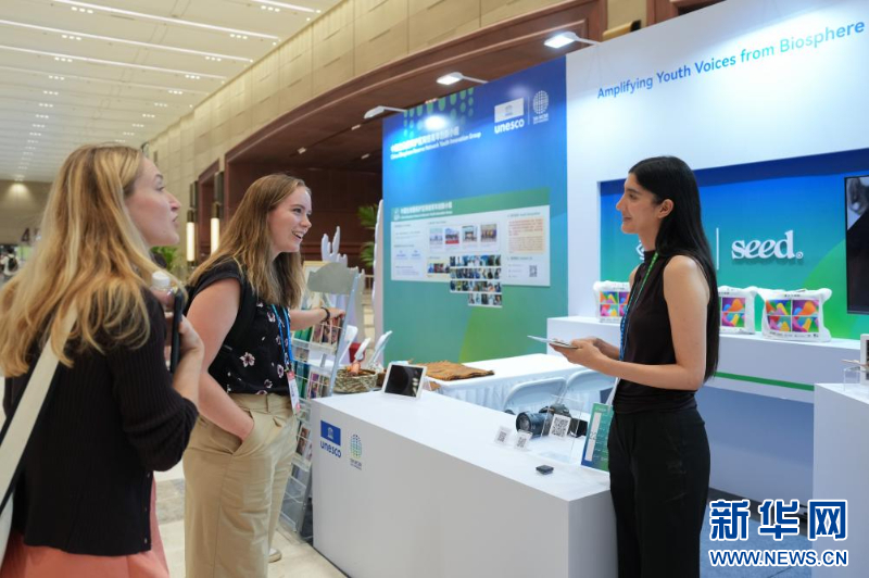 9月22日,代表在第五届世界生物圈保护区大会的展区交流。