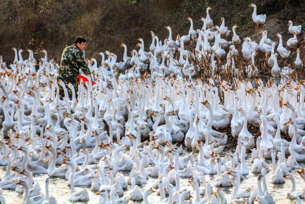 锚定“全链协同”方向,六安市建立了完整保种体系。2家国家级保种场、4家省级保种场,1家国家级良种扩繁推广基地,3家省级核心育种场,“育、繁、推”一体化体系,让鹅产业具备“稳产能、提品质”的竞争力。“十四五”以来,皖西白鹅养殖规模从1300万只升至2000万只,增幅54%。