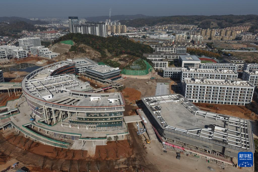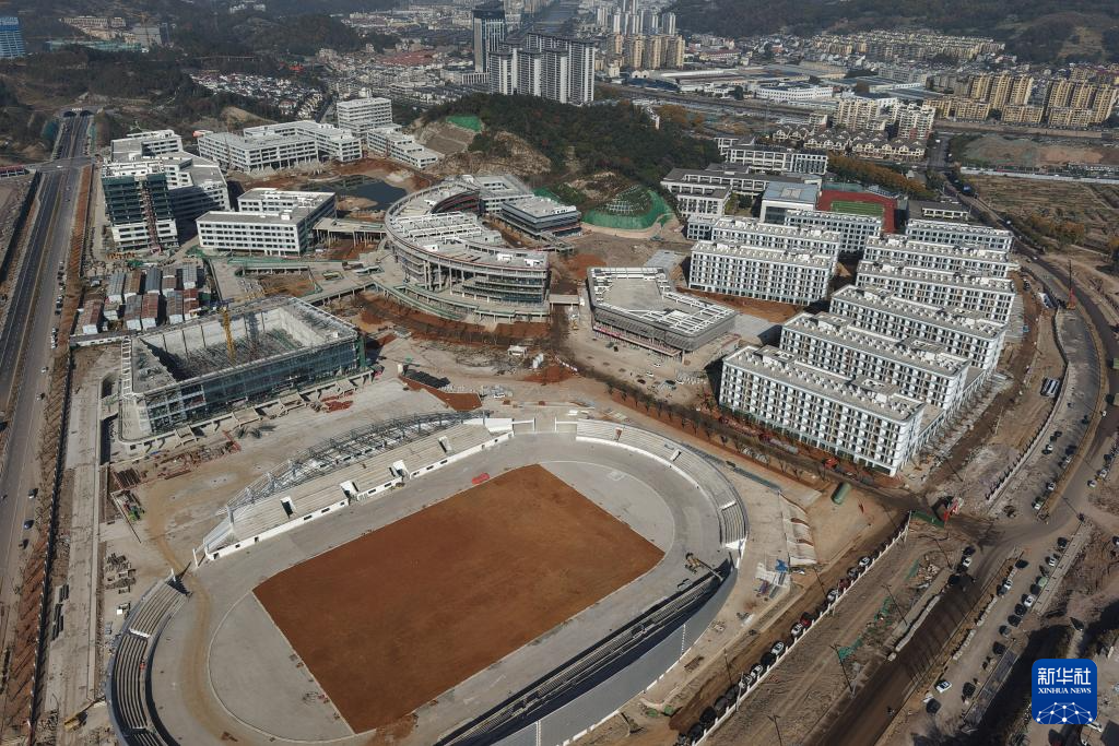 建设中的浙江工业职业技术学院新昌学院(11月26日摄,无人机照片)。