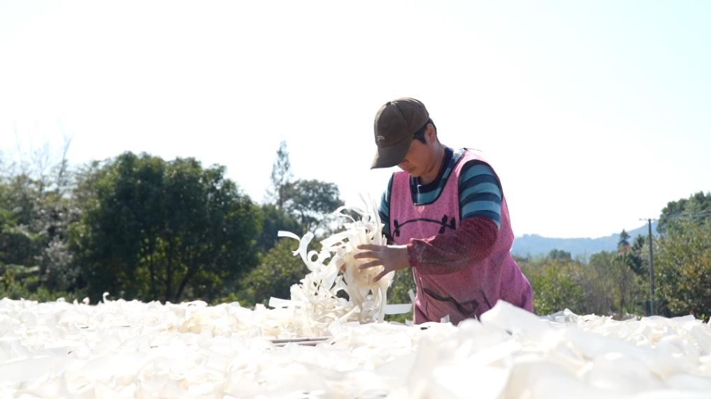早上五点,湖州市吴兴区埭溪镇莫家栅村村民杜菊芳已开始忙碌。她制作的是莫家栅村传统绿色手工红薯粉丝。