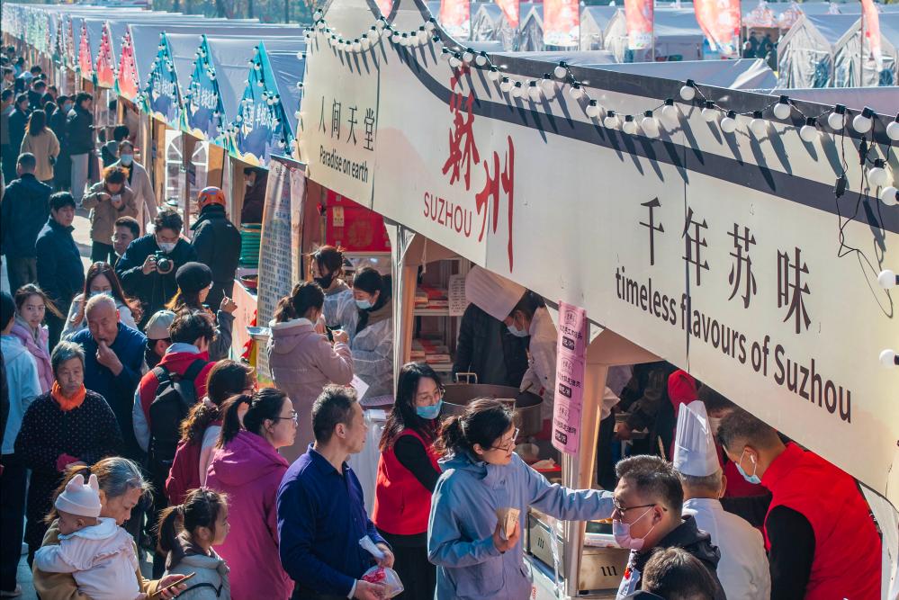 12月6日,人们在江苏省靖江市长江文化中心活动现场选购“苏味”食品。